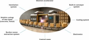 Advantage of using the container-type complex for E-beam and X-Ray product processing reduces facility commissioning time and lowers costs compared to costs for constructing and installing of separate systems.