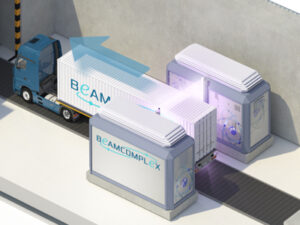 The E-BEAMBOX can be simultaneously equipped with 2 to 3 conveyor systems to irradiate products in boxes, in bulk in one layer, on pallets, in bags and in cargo containers.
